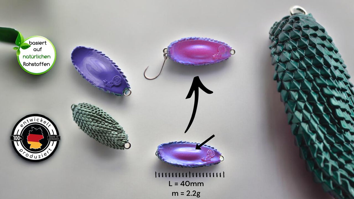 Entdecke neue Möglichkeiten im Spoon Angeln! Floon40 ist ca. 4 cm klein, wiegt 2,2 g und kann schwimmen. Daher hat er herausragende Eigenschaften!