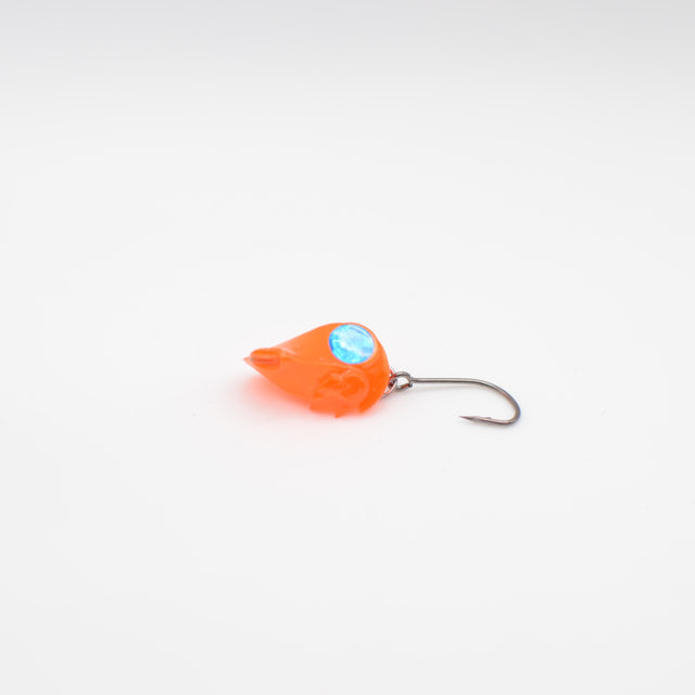 - Dekor: UV-Orange mit blauem, reflektierenden Beisspunkt nahe am Haken